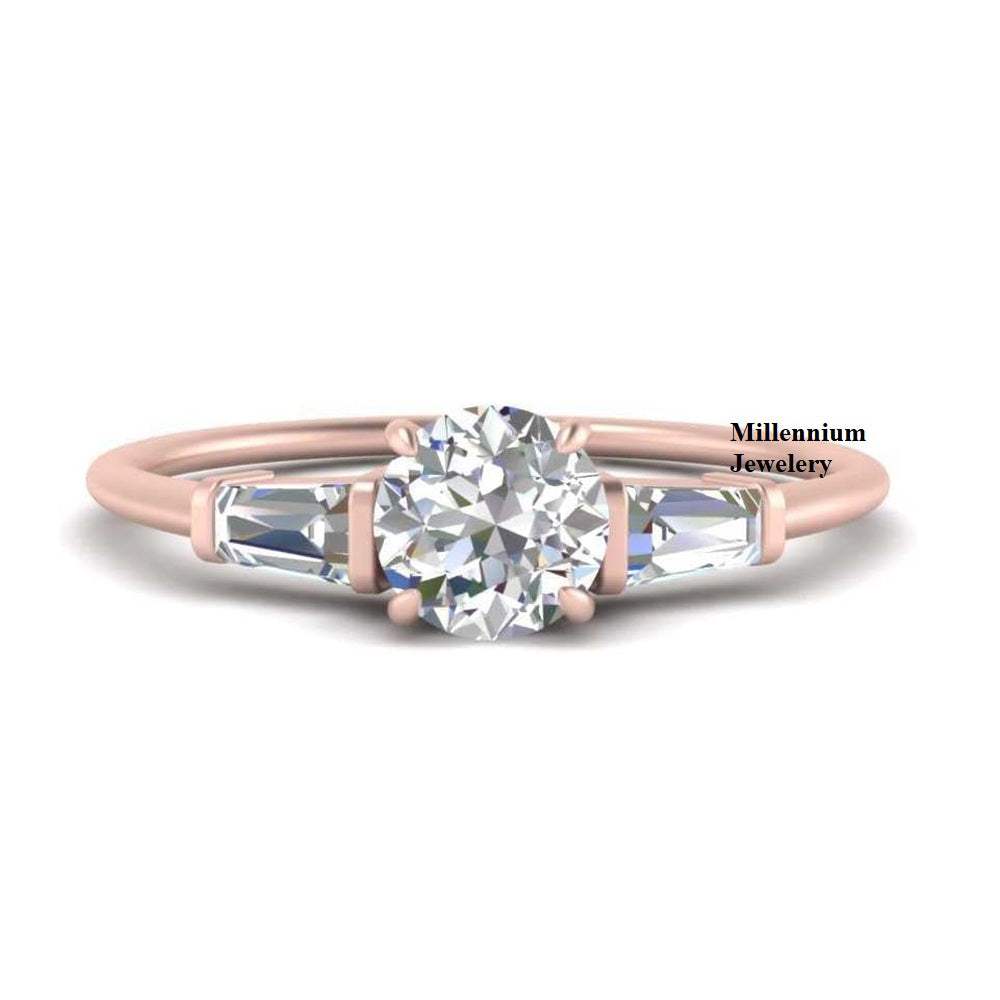 1.70ct Round & Tapered Baguette Shape Three Stone Moissanite Diamond Ring